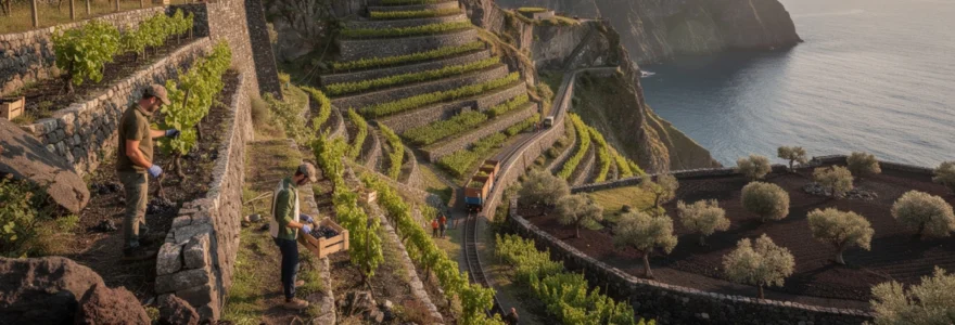Dans d’autres contextes, notamment dans certaines parties des Cinque Terre ou sur des îles escarpées, le recours ponctuel à l’hélicoptère pour évacuer la récolte a été expérimenté. Certes, cette solution reste coûteuse et n’est utilisée que pour des situations spécifiques, mais elle illustre le degré d’inventivité nécessaire pour rendre viable la viticulture dans des lieux où aucun véhicule terrestre ne peut accéder. Vous imaginez un instant ce que représenterait, en temps et en effort, le portage intégral de centaines de kilos de raisins sur des escaliers de pierre séculaires ?