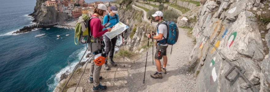 La gestion de ces passages exposés repose sur quelques principes simples : garder trois points d’appui permanents (deux pieds et une main, ou l’inverse), éviter les dépassements dans les sections les plus étroites et communiquer clairement avec les personnes qui vous précèdent ou vous suivent. Pour les randonneurs sujets au vertige, un baudrier léger et une longe de via ferrata peuvent apporter un surcroît de sécurité psychologique, même si le port de cet équipement n’est pas systématiquement requis. Savoir renoncer ou choisir une variante moins exposée reste enfin une compétence clé dans toute randonnée côtière ligurienne.